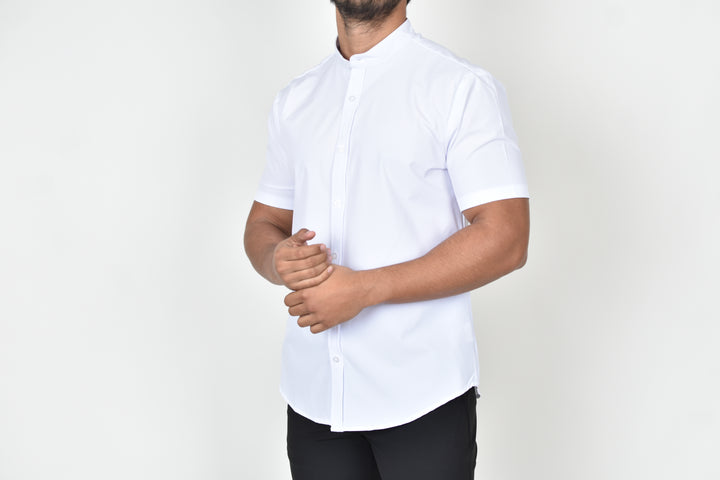 Descubre la comodidad y protección de esta camisa blanca con cuello tipo mao y manga corta. Su tela antifluidos te mantiene seguro y limpio durante tus actividades diarias, mientras que su diseño moderno y elegante realza tu estilo profesional. Ideal para quienes valoran funcionalidad sin perder la sofisticación en cada ocasión.