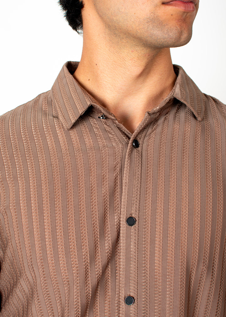 La Camisa Luxury Maison Stretch Café combina elegancia y comodidad gracias a su tejido stretch que se adapta a tu cuerpo. De manga larga y cuello sport facilita combinaciones para cualquier ocasión, su color café versátil resalta tu estilo con un toque sofisticado. Ideal para quienes buscan calidad y diseño en una sola prenda.