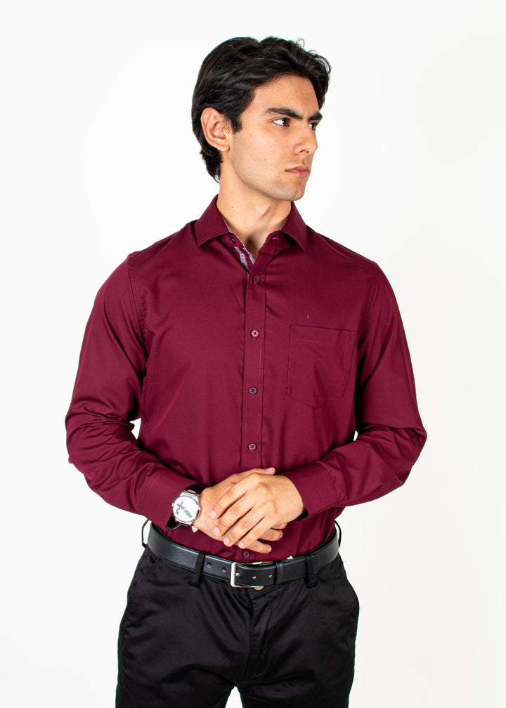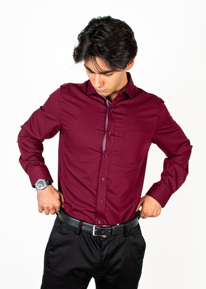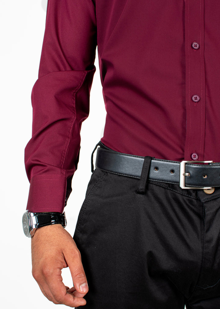 Camisa Merlot Cuello Sport Vino