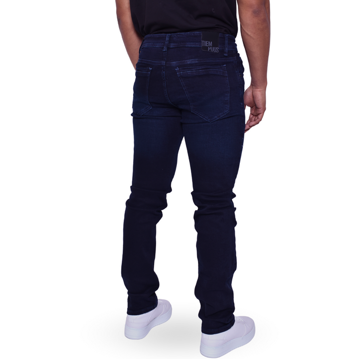 Pantalón de Mezclilla Azul Oscuro Costuras Gris Oscuras Slim Fit Tiempos