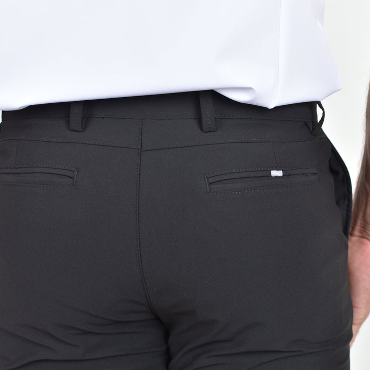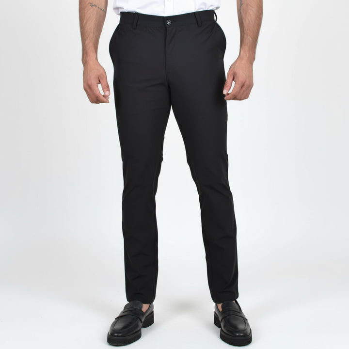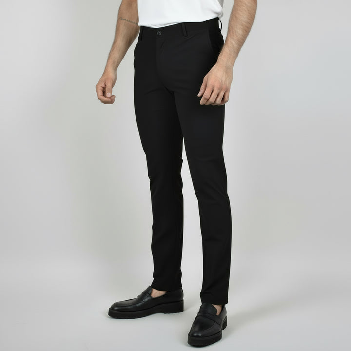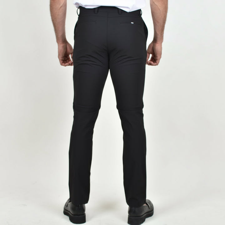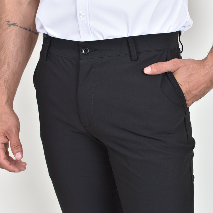 Este pantalón de vestir smart casual negro es la opción perfecta para quienes buscan combinar elegancia y funcionalidad. Su corte moderno ofrece una silueta impecable que realza tu estilo, mientras que su tela cómoda te acompaña durante todo el día. Ideal para la oficina o eventos sociales, este pantalón imprescindible aporta un toque sofisticado a cualquier conjunto.