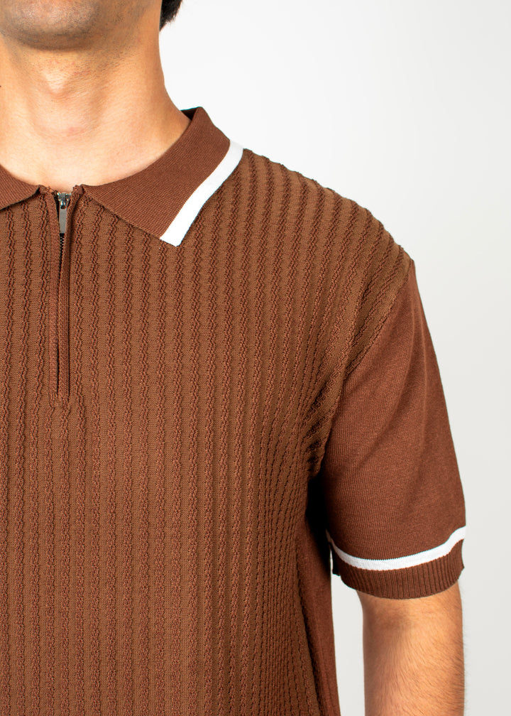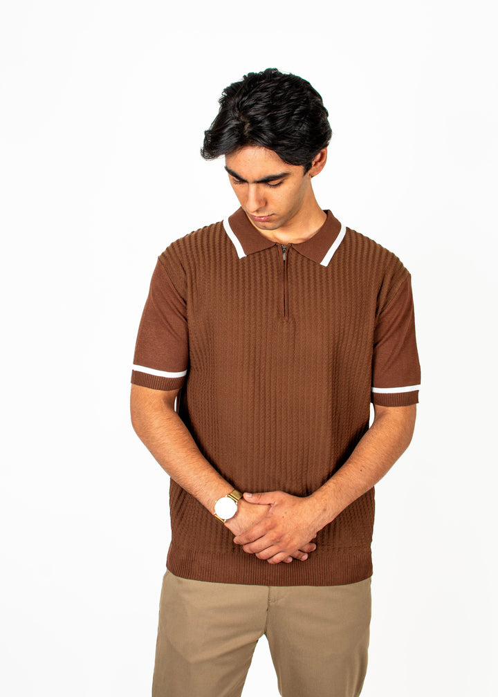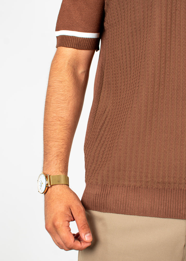 Experimenta la combinación ideal de comodidad y elegancia con la Polo Tejida Moscú Café. Su tejido suave y transpirable te mantiene fresco todo el día, mientras que su tono café aporta calidez y sofisticación a tu estilo. Perfecta para cualquier ocasión, esta prenda versátil te ayudará a lucir impecable con un toque de distinción y modernidad. Sube de nivel tu guardarropa con esta pieza imprescindible.