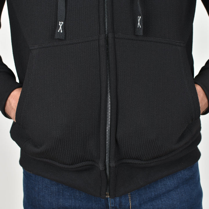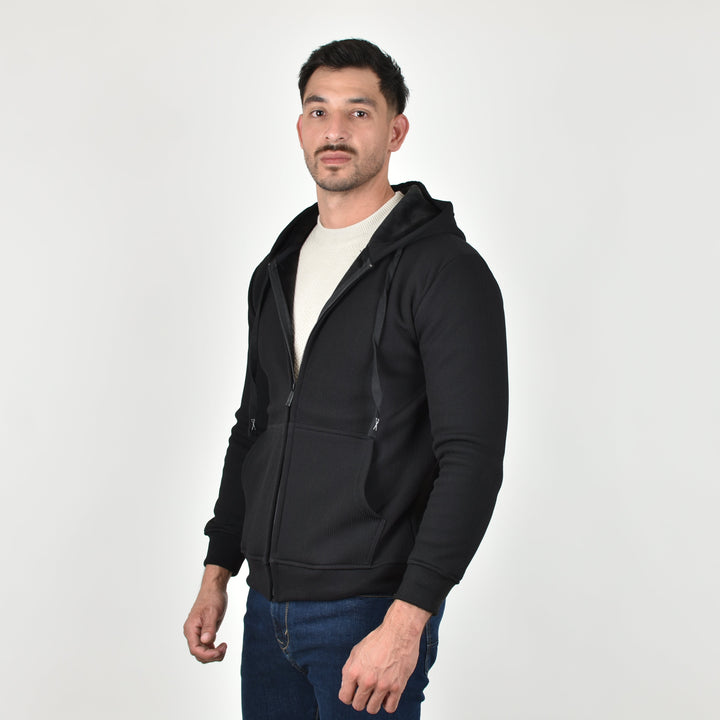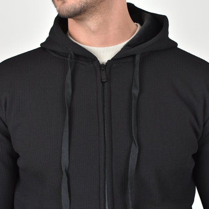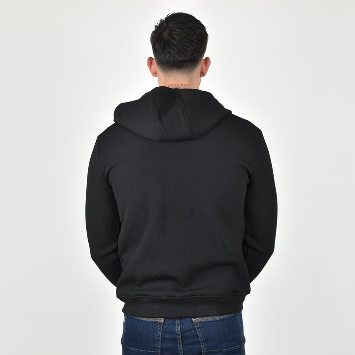 Descubre la sudadera con zipper en color negro que combina una textura sofisticada con máxima comodidad. Su diseño práctico y versátil te permite adaptarla fácilmente a tu estilo diario, manteniéndote abrigado y con un aspecto moderno. Ideal para cualquier momento, esta prenda es una inversión segura para elevar tu armario casual.