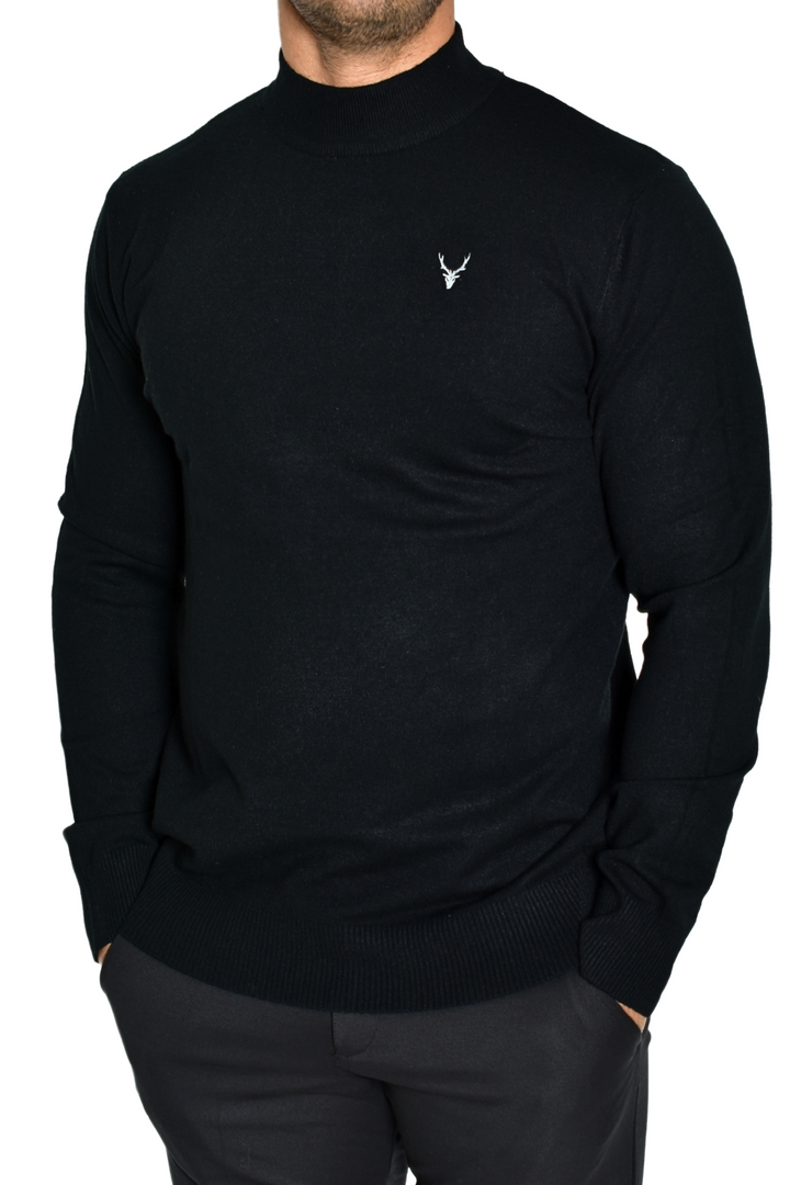 Suéter Tejido Fino Cuello Medio Negro Venado Clásico Möller